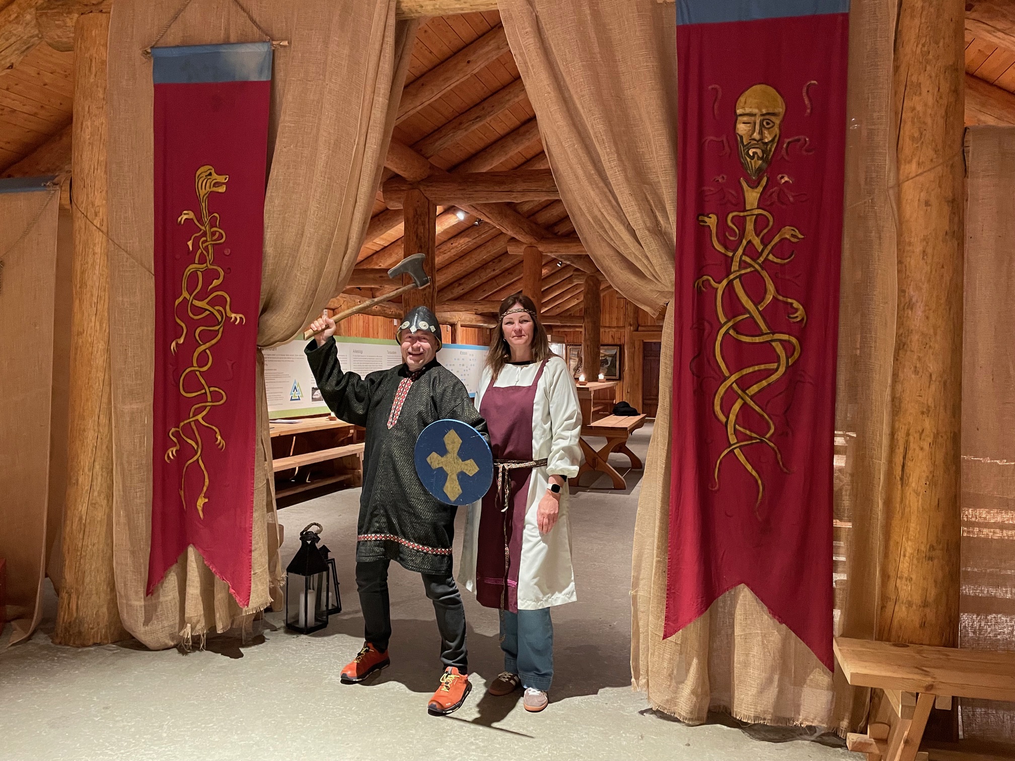 Daniel var fornøyd med å få kjennskap til hva Langhuset tilbyr av skreddersydde Gjestebud, der alle gjester kan kles opp i flotte Vikingdrakter og nyte middager med lokal kort reist tradisjonsmat og god drikke i Gildehallen. Det kan velges mellom flere typer utvalgte kappestrider og aktiviteter – for både store og små – både innendørs og utendørs inkludert kulturelle opplevelser – av »euforisk karakter» som en av de positive tilbakemeldingene lød fra sommerens mange gjester fra to cruise skip anløp med tyske turister.